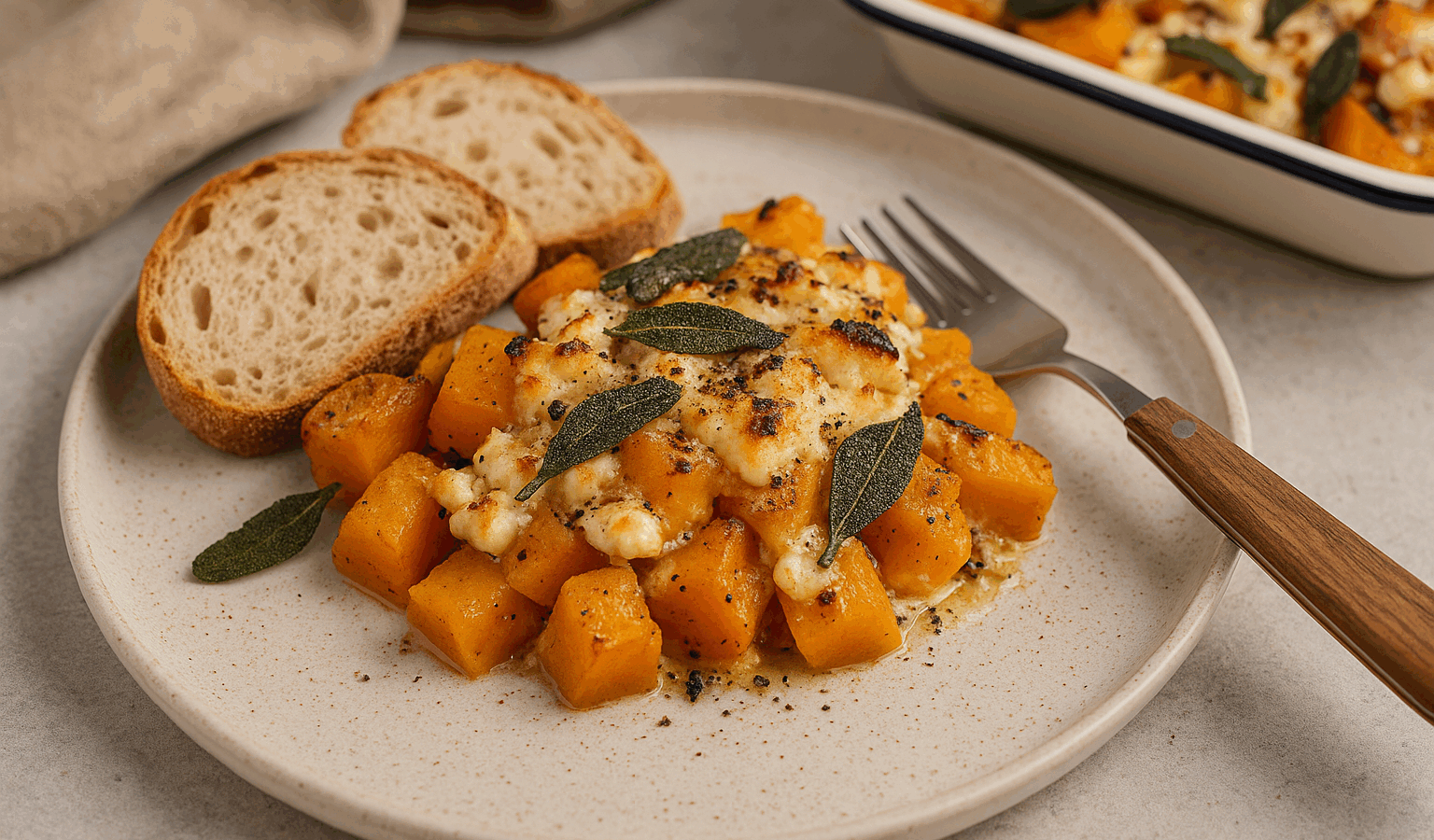 Wenn die Tage kürzer und die Luft frischer wird, ist dies eines dieser Gerichte, das Sie automatisch aufwärmt. Dieser Auflauf mit Kürbis, Salbei und Ziegenkäse ist einfach in der Zubereitung, aber voller Geschmack. Der zarte Kürbis und der cremige Käse erhalten durch eine Prise Zeeland Salt Black Garlic das gewisse Extra: dezent süß, herzhaft und voller Umami. Perfekt für einen Abend, an dem Sie etwas Besonderes essen möchten, ohne viel Aufhebens zu machen.