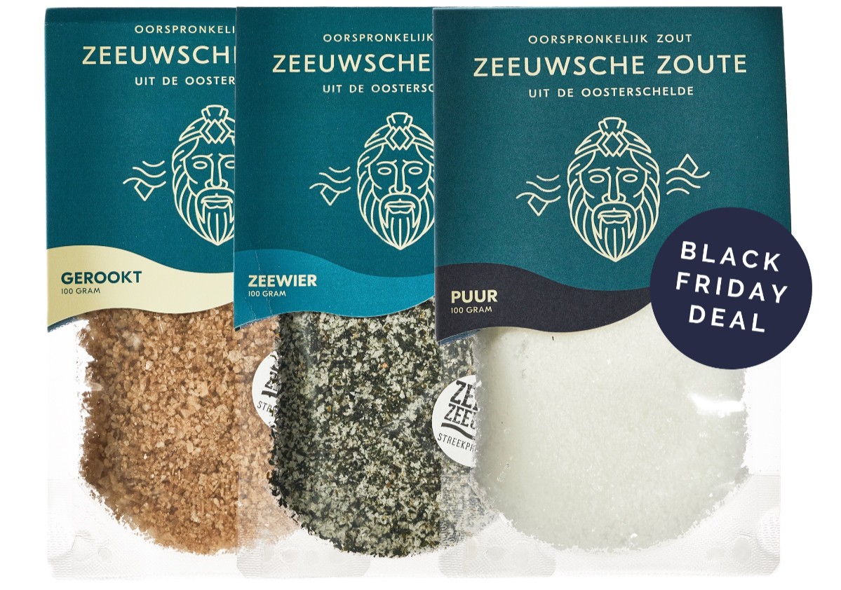 Drei köstliche Geschmacksrichtungen von Zeeuwsche Zoute sind auch als Kombinationsset erhältlich. Genießen Sie reines Meersalz, gerauchert und Wakame. Jede Packung enthält 100 Gramm Salz. Mit unserer Variante Pure lernen Sie den reinen Geschmack der Oosterschelde kennen. Zeeland Salt Smoked ist perfekt für eine reichhaltige und rauchige Note in jedem Gericht. Zeeland Salt Wakame ist eine Kombination aus Zeeland Salt Rein und Seetang. Dieser Seetang stammt aus der Oosterschelde. *Freier Versand - Dieses Paket wird als Briefkastenpaket verschickt, daher fallen keine Versandkosten an. Hinweis: Dies gilt nur für das Trioset Stazak. Bei Bestellung in Kombination mit anderen Produkten können Versandkosten anfallen.